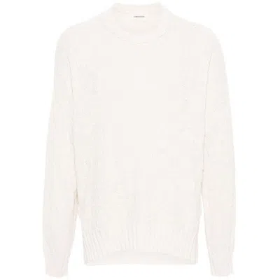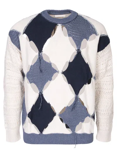 Blue Cream Cut Out Sweater With Rhombuses In White