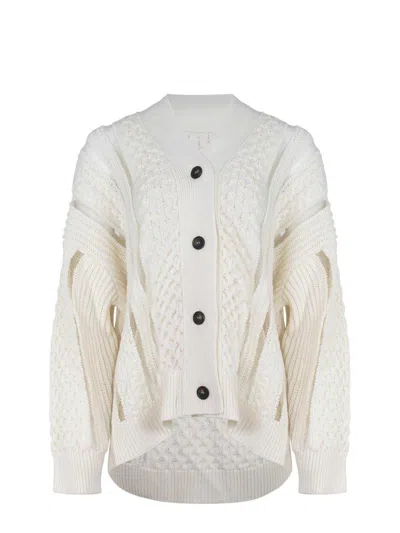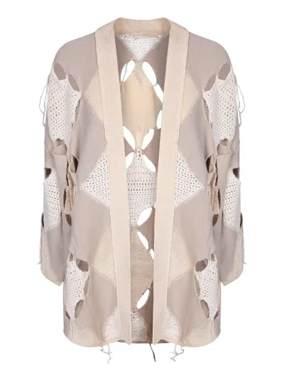 Mixed Knit Cardigan With Patchwork Details In Beige
