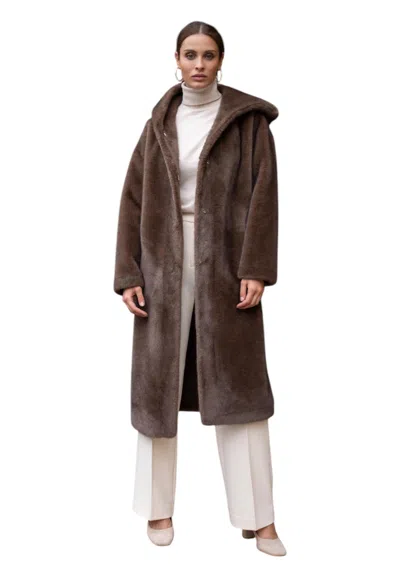 Long Coat In Synthetic Fur With Hood Woman Attentif Paris In Brown
