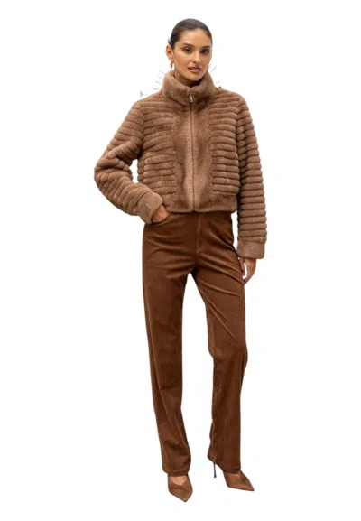 Short Coat In Synthetic Fur With Horizontal Bands Woman Attentif Paris In Brown