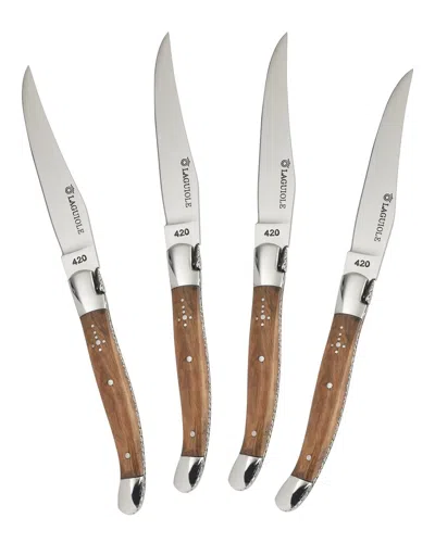 Laguiole Set Of 4 Steak Knives With Juniper Wood Handles In Clear