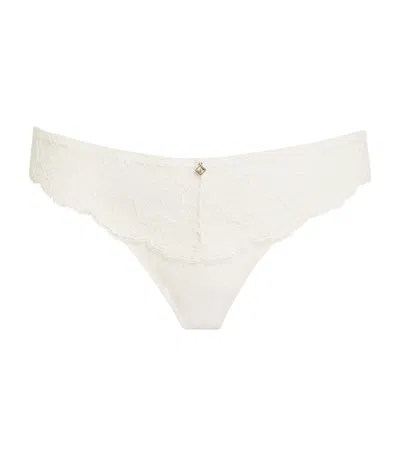 Danse Des Sens Low-rise Strech-lace Embroidered Thong In Opale