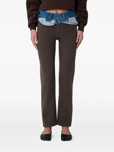 对比裤腰五口袋牛仔裤