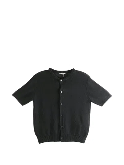 Short-sleeve Buttoned Cardigan In Black