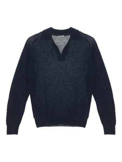 Mens Brushed Super Kid Mohair Knit Polo In Black