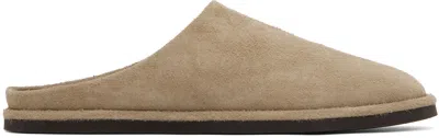 Beige Leather Mules In Suede Beige