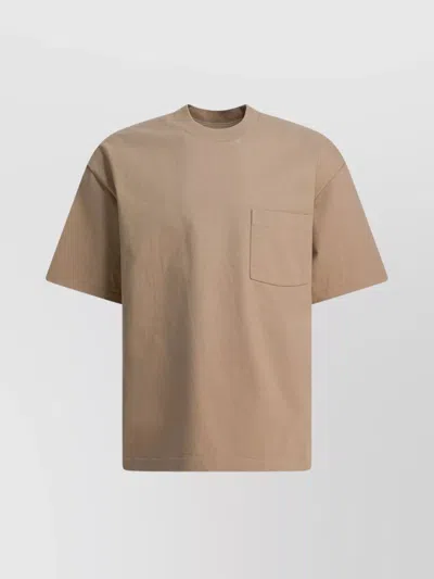 Crew Neck Cotton T-shirt With Chest Pocket In Brown