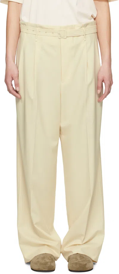Beige Super Fine Tropical Wool Two-tuck Trousers In Ivory