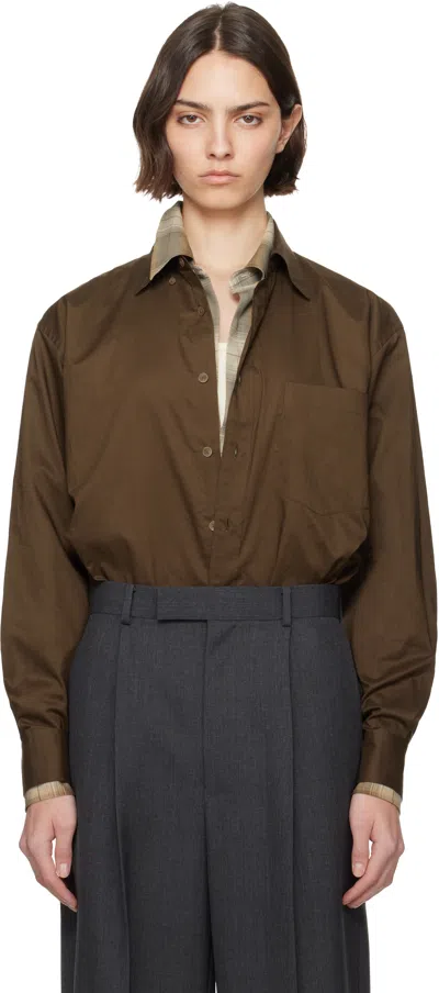 Brown Oversized Leather Shirt In Dark Brown