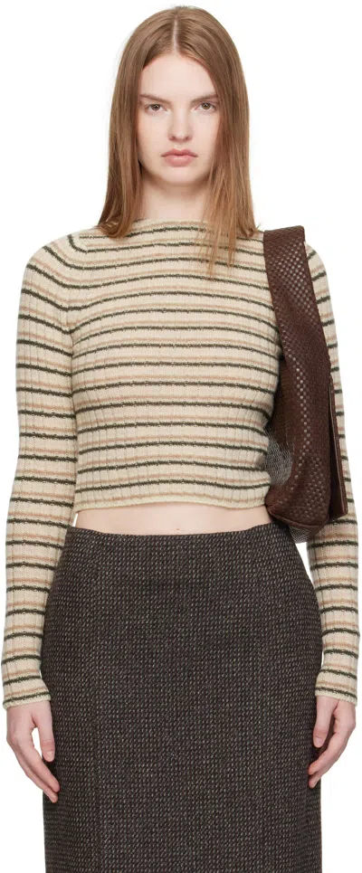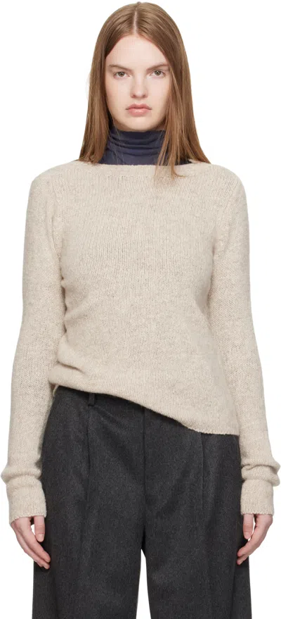 Beige Shetland Wool Cashmere Rib Knit Boat-neck Sweater In Brown