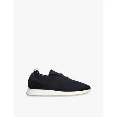 Womens Navy Active Knitted And Suede Low-top Trainers Eur 44 / 10 Uk In Black
