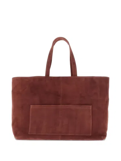 Suede Leather Shopping Bag In Red