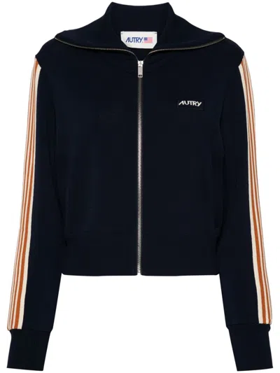 条纹细节拉链卫衣