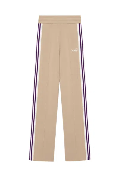 Wide Leg High Waist Sweatpants With Side Stripe In Knit Sand