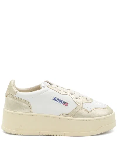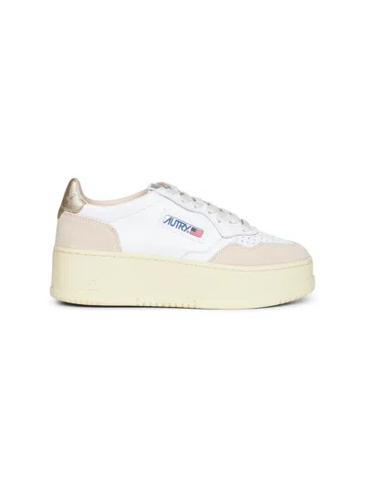 Medalist Platform Sneakers In White And Beige Calf Leather