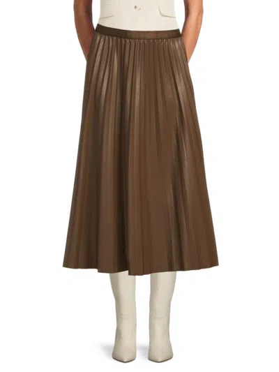 Women's Pleated Faux-leather Midi-skirt In Brown
