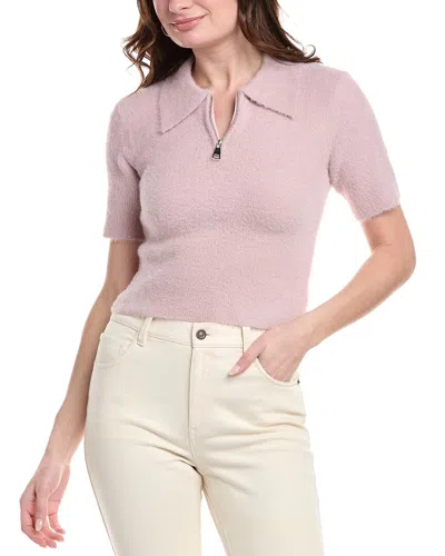 Fuzzy Eyelash 1/4-zip Polo Sweater In Pink