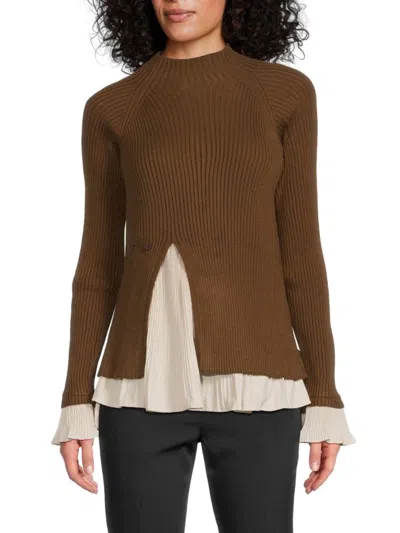 Women's Layered-look Cable Knit Sweater & Ruffled Top In Camel