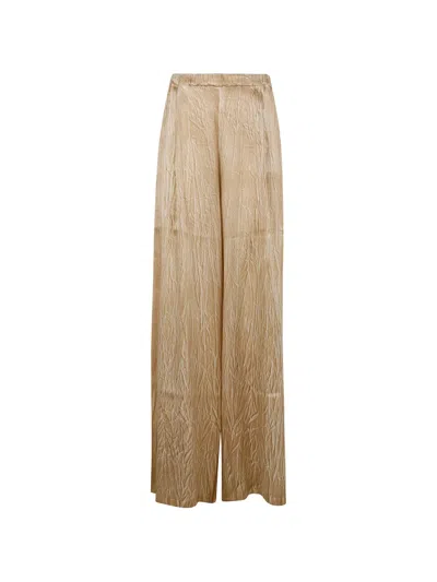 Women Crumpled Effect Silk Palazzo Pants In Brown