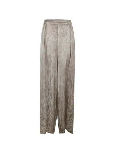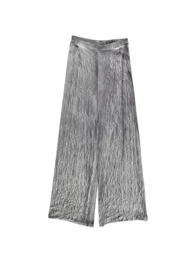 Women Crumpled Effect Silk Palazzo Pants In Gray
