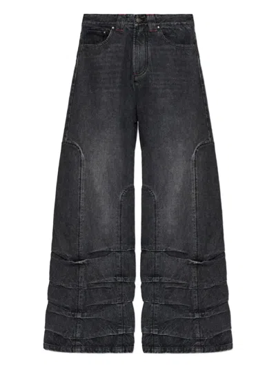 烟雾细节阔腿牛仔裤