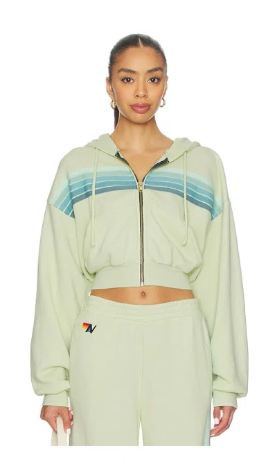 5 Stripe Cropped Zip Hoodie Aquamarine/white Neon In Blue
