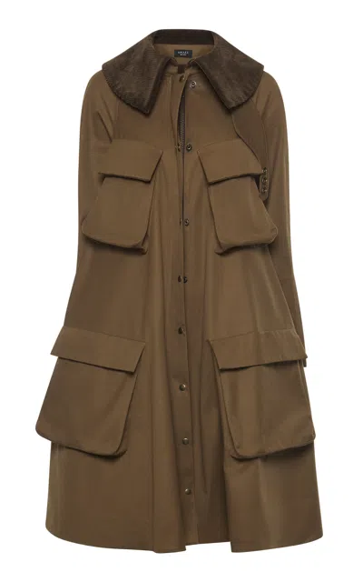 Pocket-detailed Long Flared Cotton Gabardine Trench Coat In Brown