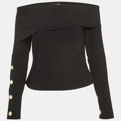 Pre-owned Mode Black Stretch Crepe Draped Neck Top M