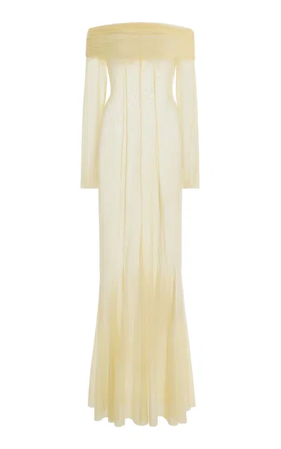 Exclusive La Isla Paloma Off-the-shoulder Mesh Maxi Dress In Yellow