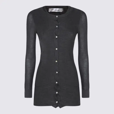 Dark Grey Silk Mini Dress In Gray