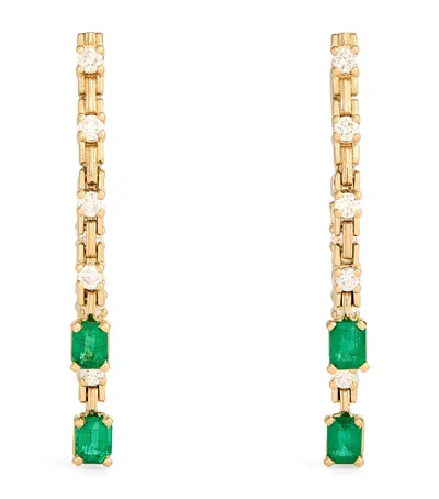 Small Yellow Gold, Diamond And Emerald Pirouette Strand Earrings