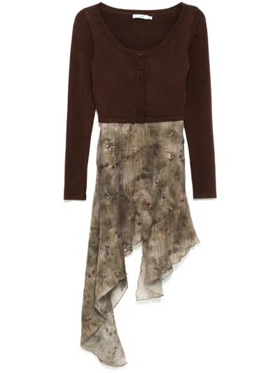 Glitter Detail Set Dress In Brown