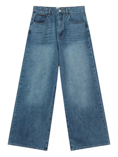 仿旧阔腿牛仔裤