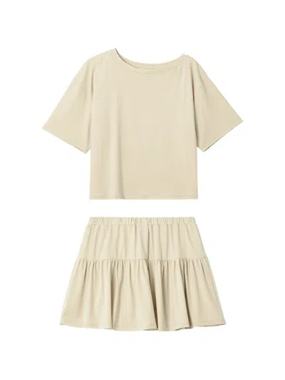 Off-shoulder Tiered Pyjama Set In Neutral