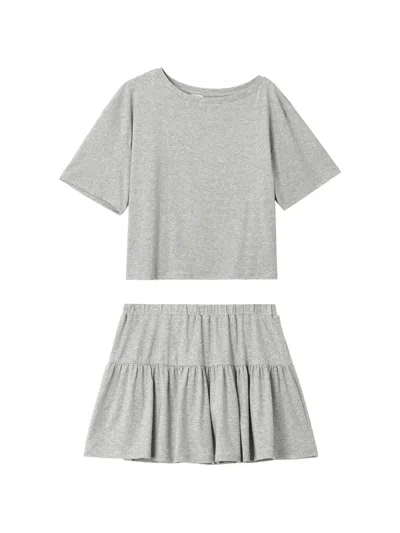 Tiered-skirt Pajama Set In Gray