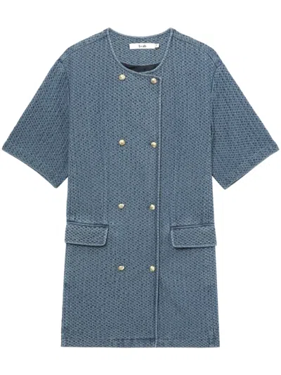 Double-breasted Textured Denim Mini Dress In 蓝色