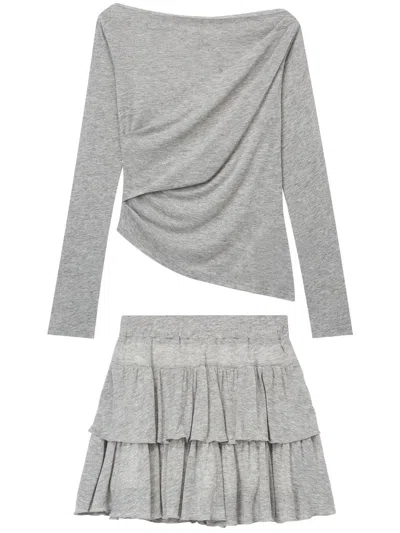 罗纹针织迷你半身裙套装