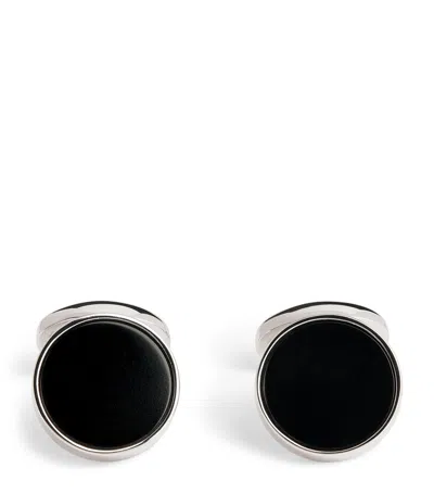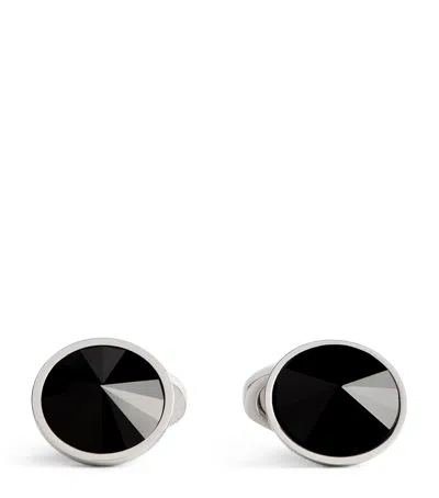 Rhodium-plated Deco Onyx Cufflinks In Black