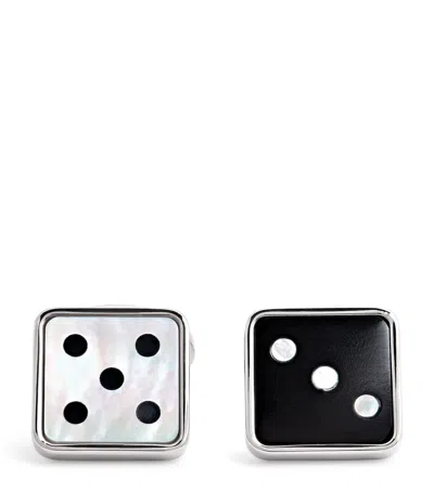 Onyx And Mother-of-pearl Dice Cufflinks In Silver