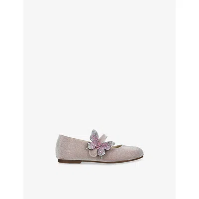 Kids' Pale Pink Baby Crystal-butterfly Embellished Velvet Ballerina Pumps Eur 27 / 9 Uk