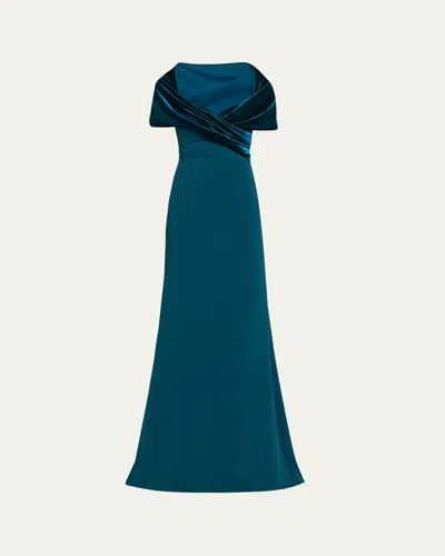 A-line Sweetheart Gown With Velvet Cape In Blue