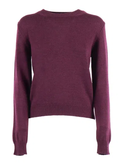 Ribbed Crew Neck Sweater In Smooth Polyester Finish In Brown