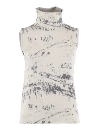 Turtleneck Slipover Sweater In Soft Wool-cotton Blend In Multi