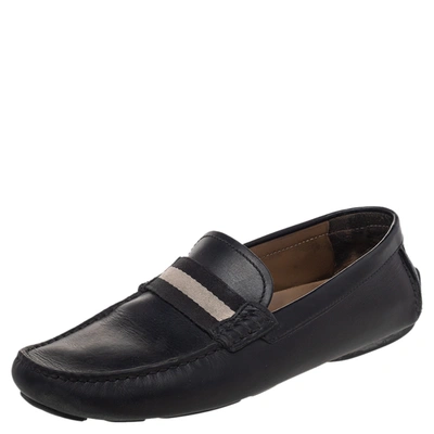 Pre-owned Black Leather Bb Horsebit Pebbled Driver Loafers Size 41.5