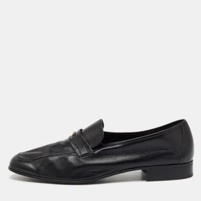 Pre-owned Black Leather Logo Slip On Penny Loafers Size 45