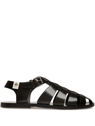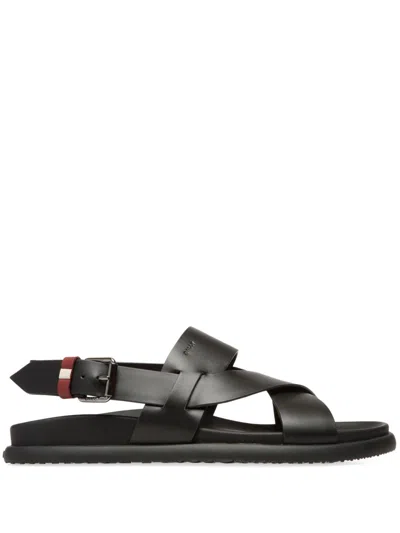 Cross Strap Flat Sole Open Toe Sandals In Black