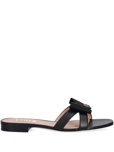 蝴蝶结缀饰皮质拖鞋