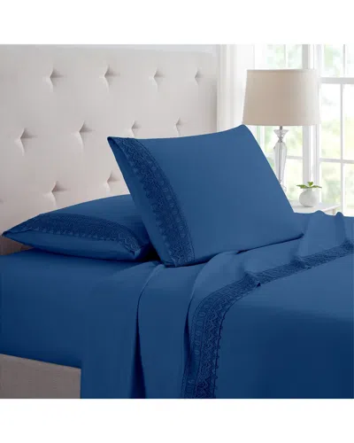 Bamboo 4 Piece Luxury 3 Line Embroidered Sheet Set In Blue