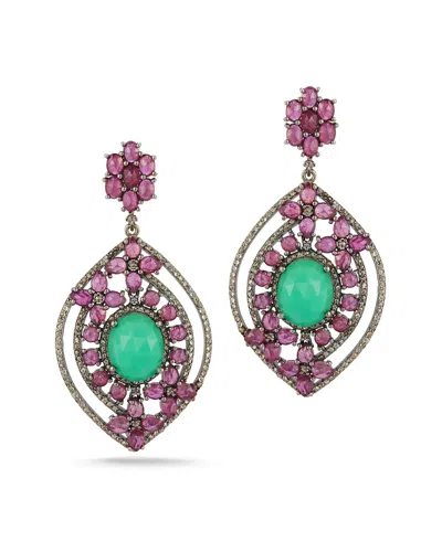 Silver 1.85 Ct. Tw. Diamond & Gemstone Drop Statement Earrings In Multi