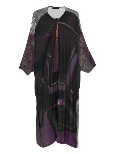 抽象印花排扣连衣裙